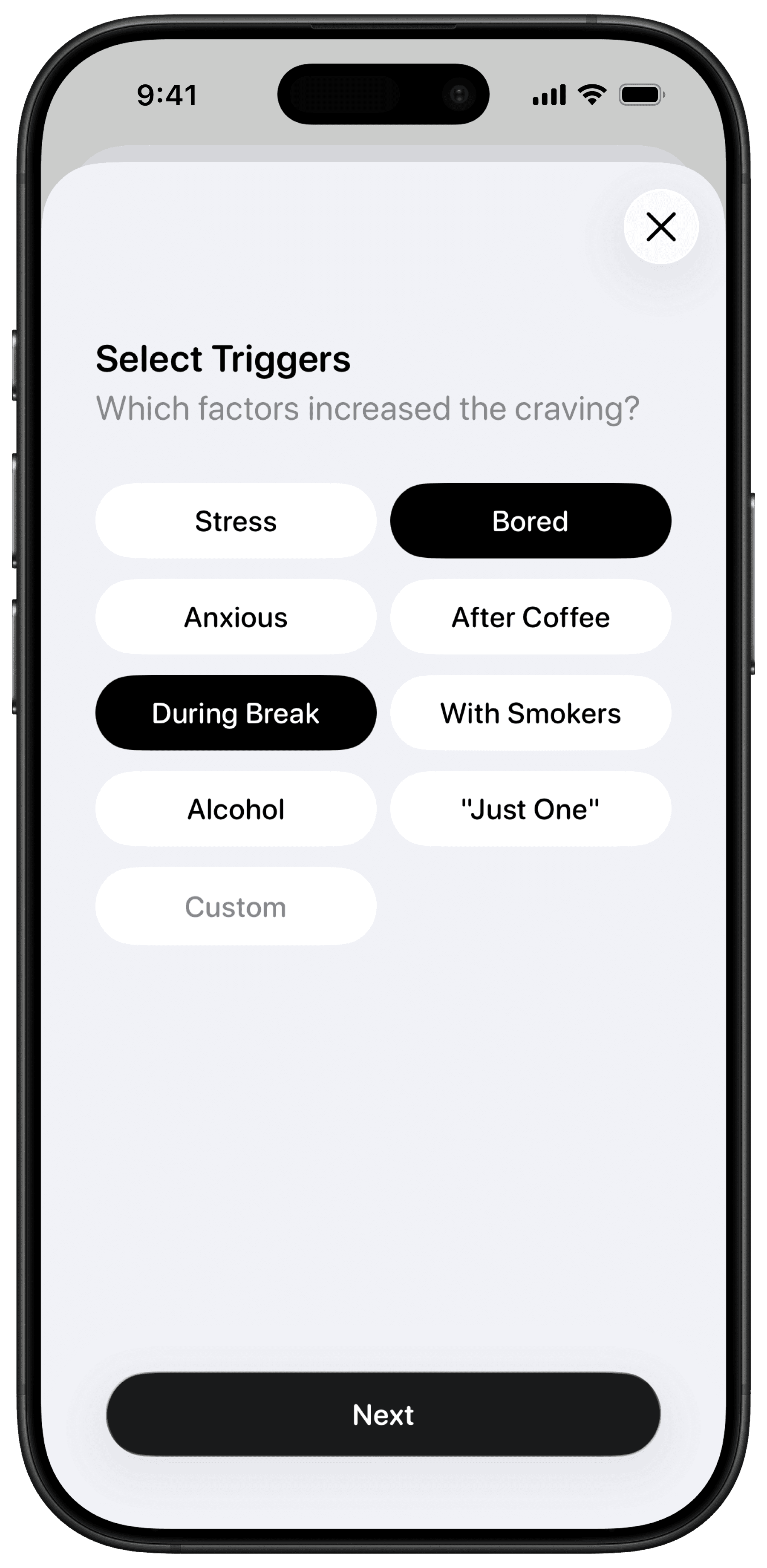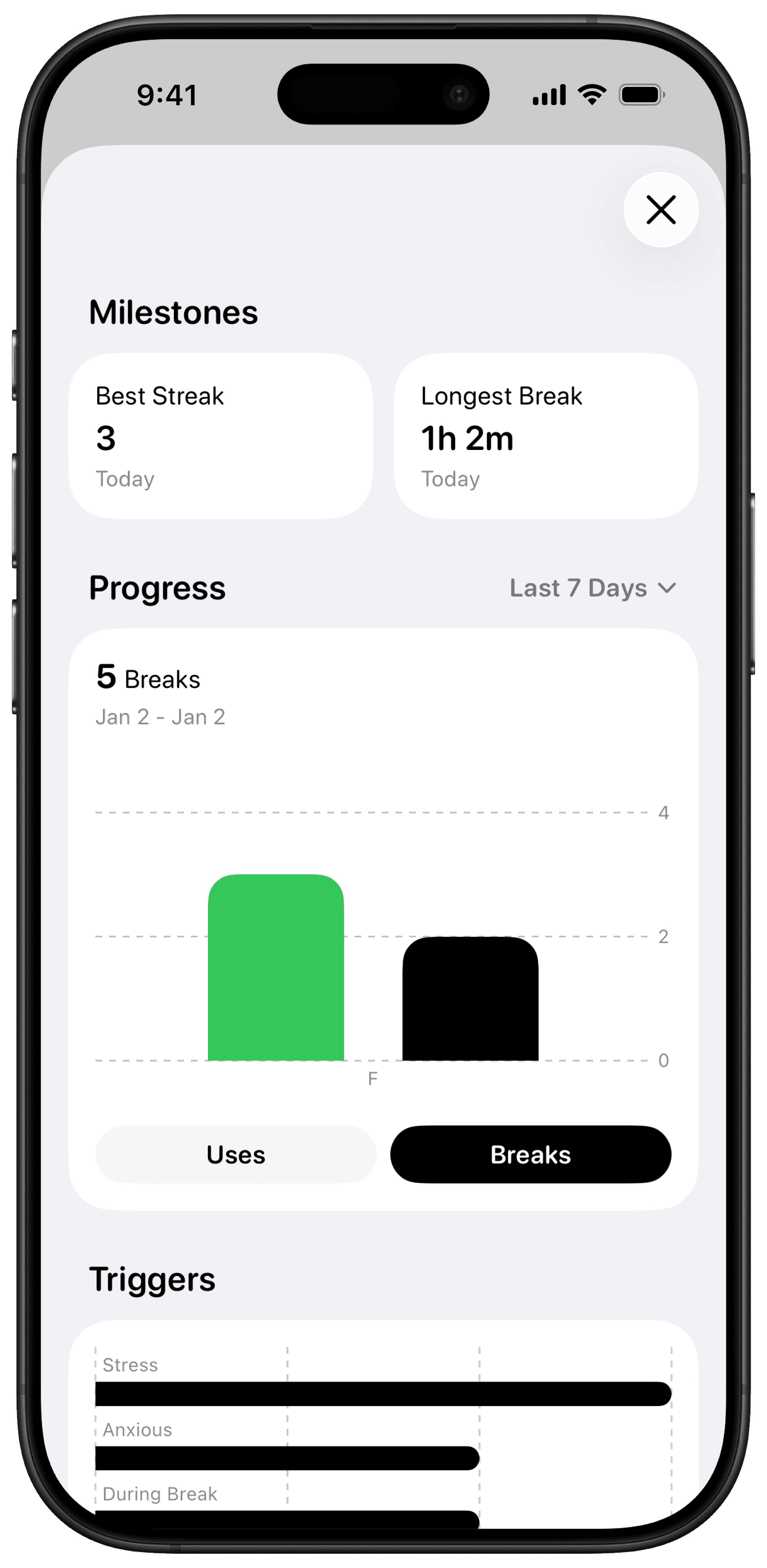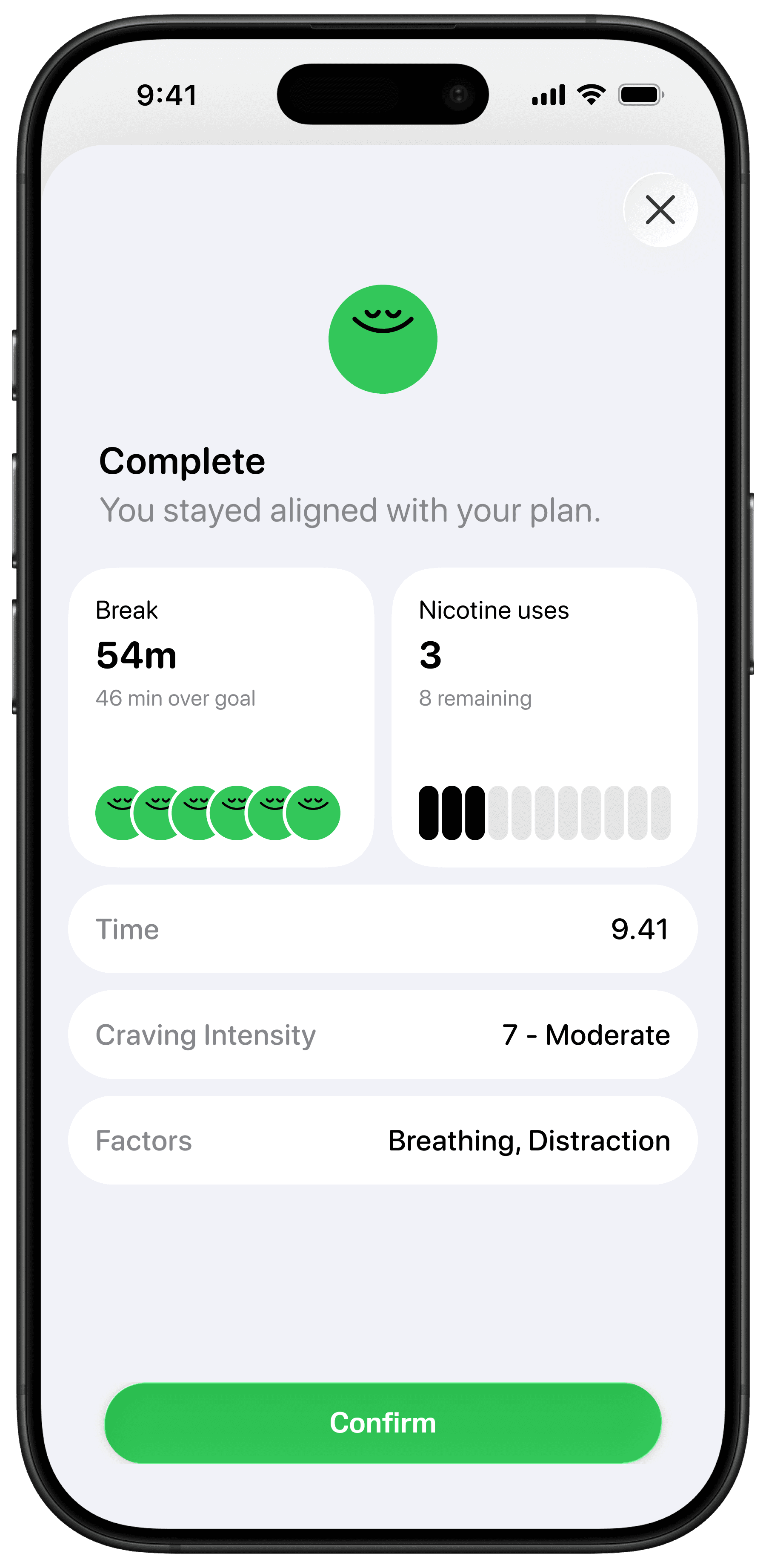 Gnash is an iOS app that uses gradual reduction to help you gain control over nicotine. Each day, your break goal from smoking, vaping, or snuff increases. Meet it? Happy green ball. Don’t? Distressed ball. Both appear. Both count. As your screen fills, you see every attempt—and your progress. And there's more coming…